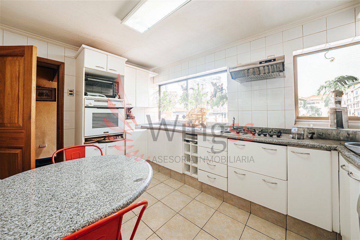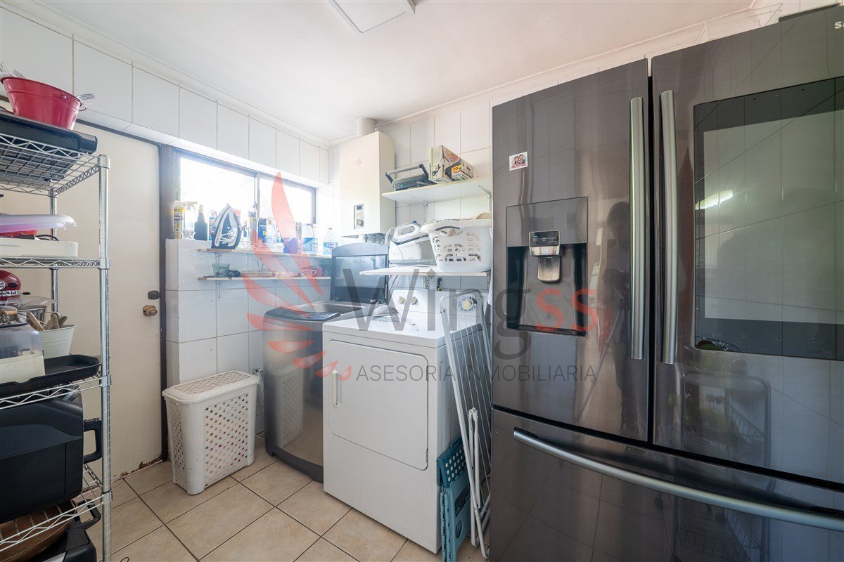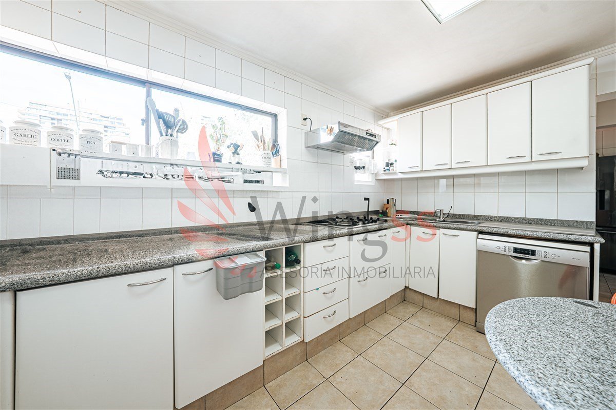 Una cocina de gran tamaño junto al baño de visitas y loggia. Destaca su sala principal con salida a terraza patio principal con piscina mas quincho en orientación Norte.