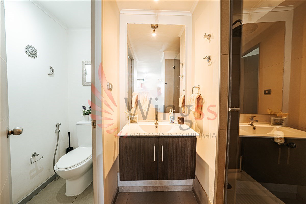 La habitación es espaciosa y cuenta con armarios empotrados. Además, ofrece acceso directo al baño, el cual se divide en tres partes, WC, lavamanos y ducha, potenciando un uso muy práctico para la vida moderna.