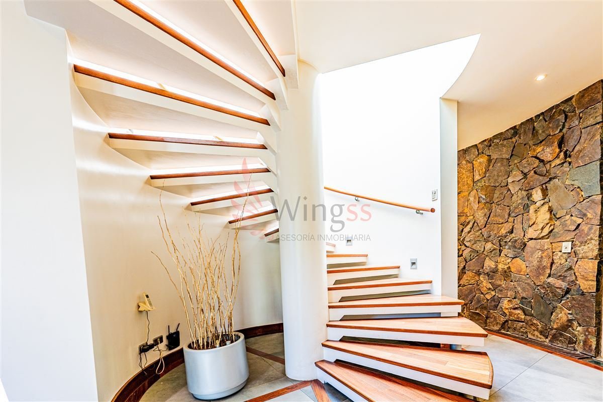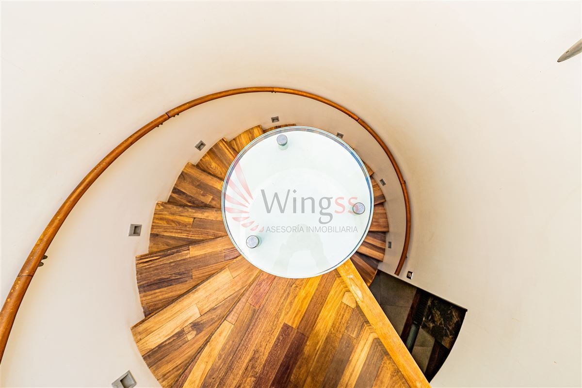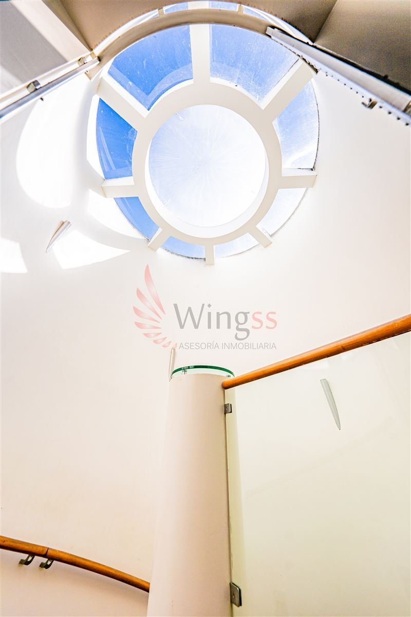 Al segundo nivel se accede a través de una vanguardista y holgada escalera en espiral que da una agradable sensación de fluidez espacial, potenciado con una cúpula tragaluz.