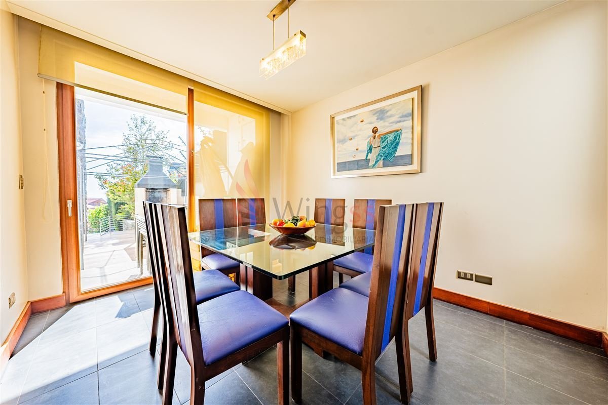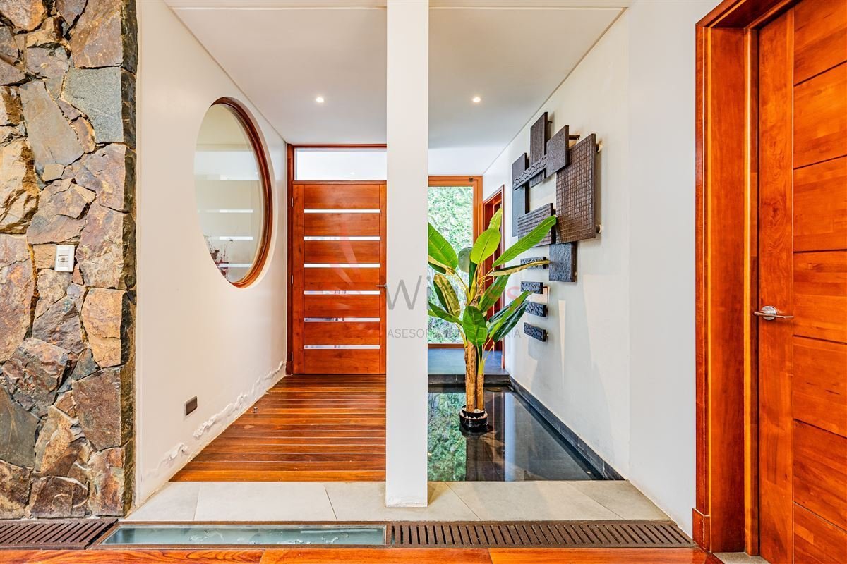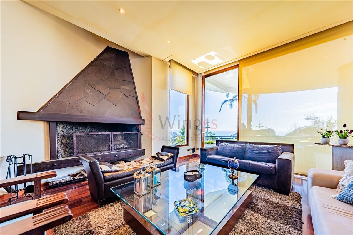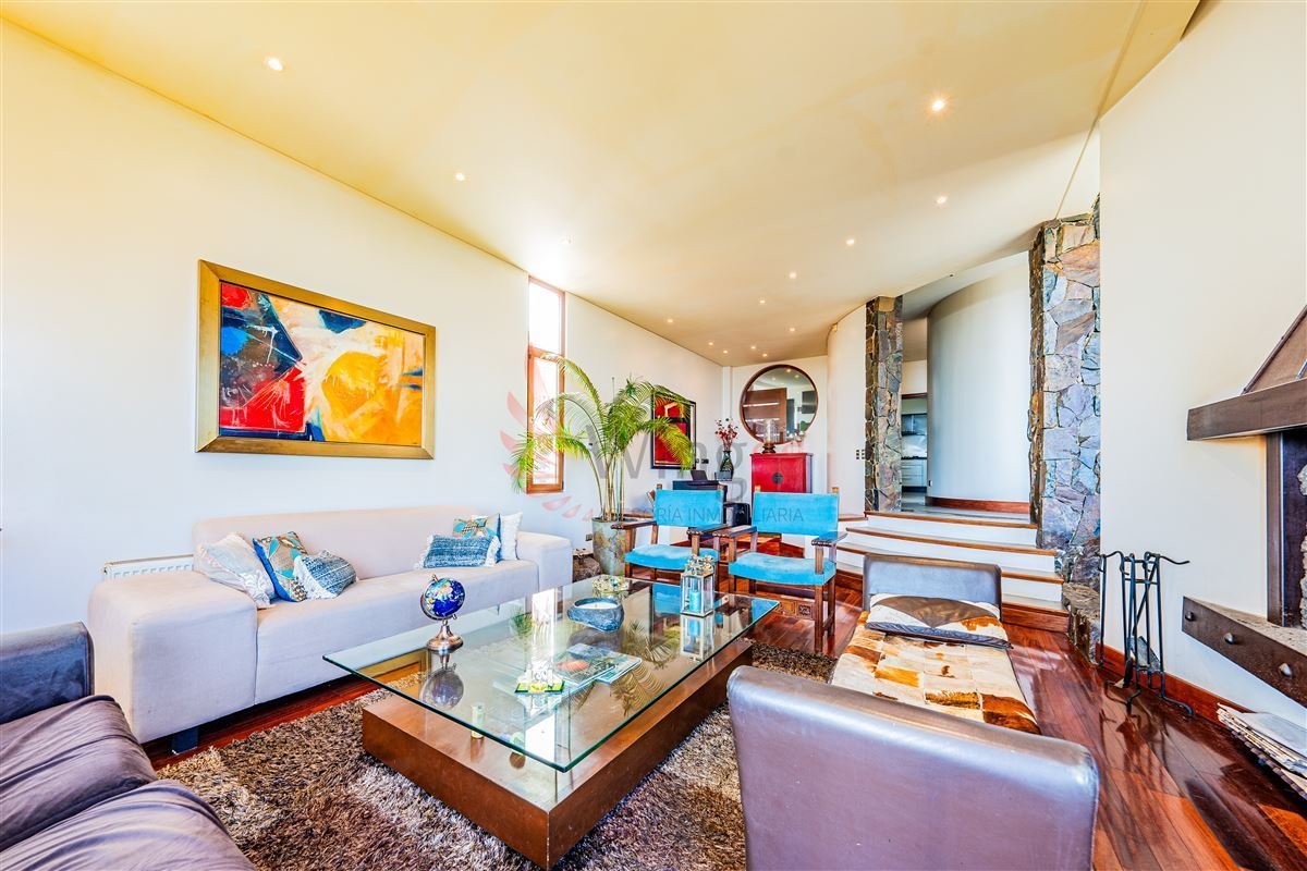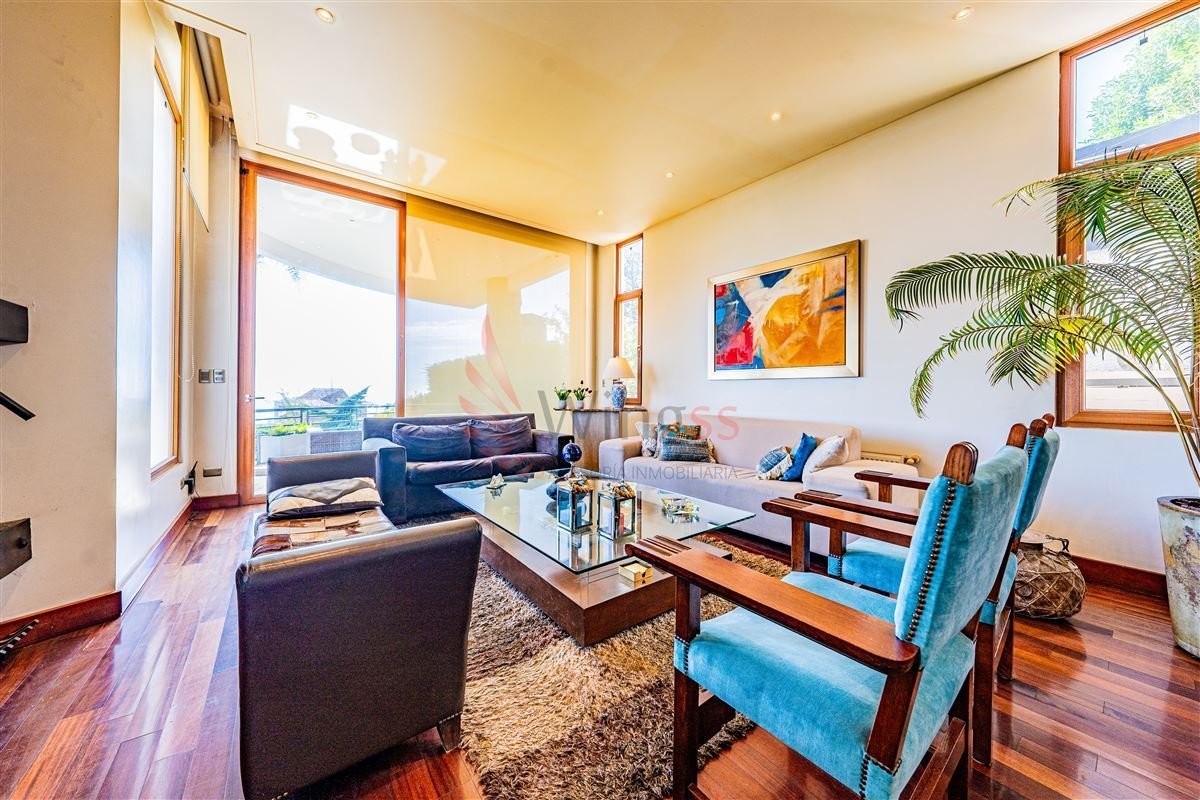 Living y comedor separados, con enormes ventanales, una segunda fuente interior, acogedora chimenea y salida a terraza con impactante vista.