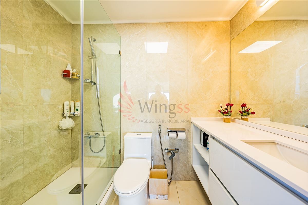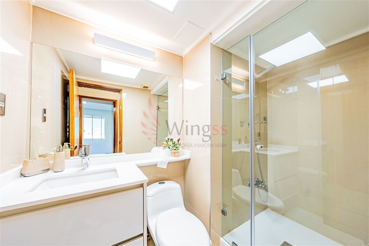 Holgado dormitorio principal en suite, baño recientemente renovado, con closet empotrado y ventanales de termopanel con salida a la terraza.