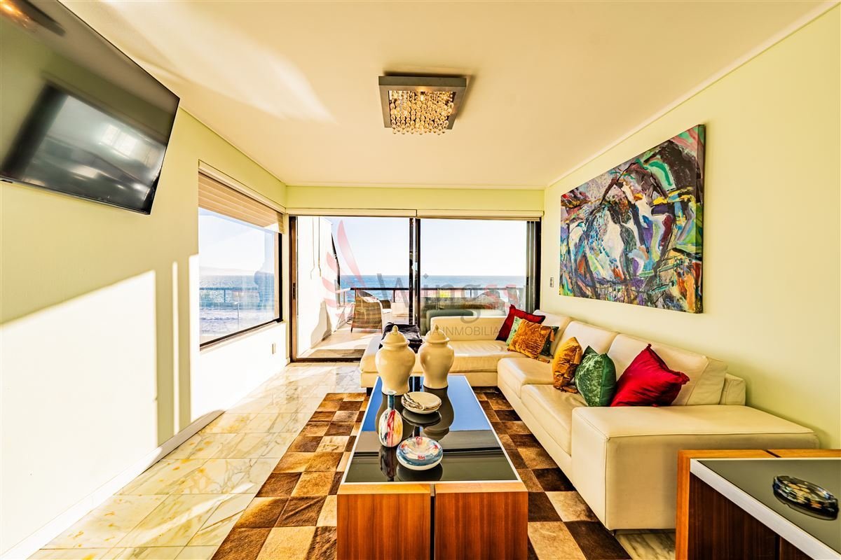 La amplia terraza, conectada con el living-comedor y dormitorio principal, puede acomodar holgadamente un juego completo de terraza y comedor exterior además de la parrilla para disfrutar de celebraciones familiares y con amigos, disfrutando de la maravillosa vista a la playa. Incluye bodega y estacionamiento.