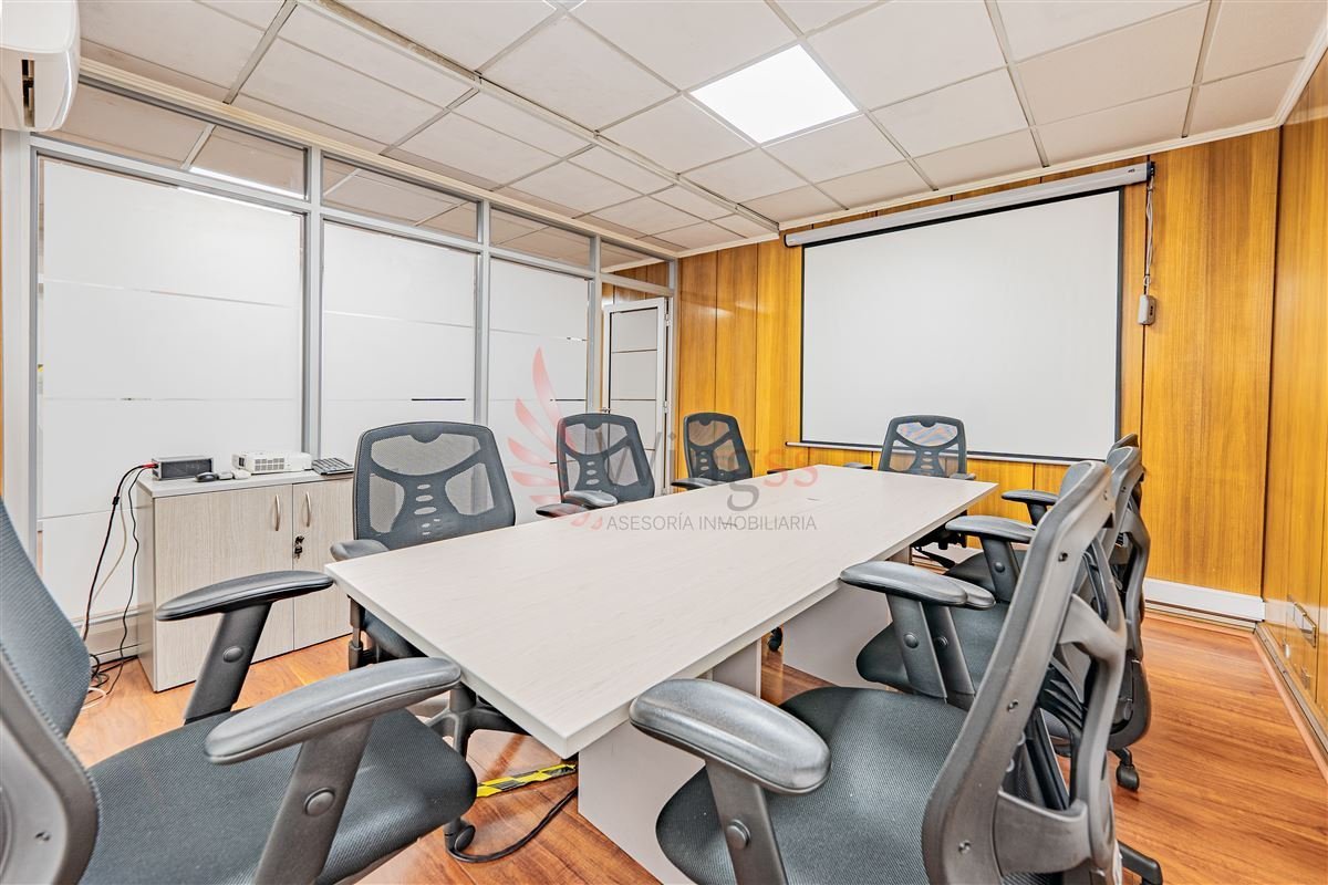 Amplio hall de acceso, 5 privados, kitchenette, área de trabajo abierta, 1 sala de reuniones, 4 baños y 1 balcón.