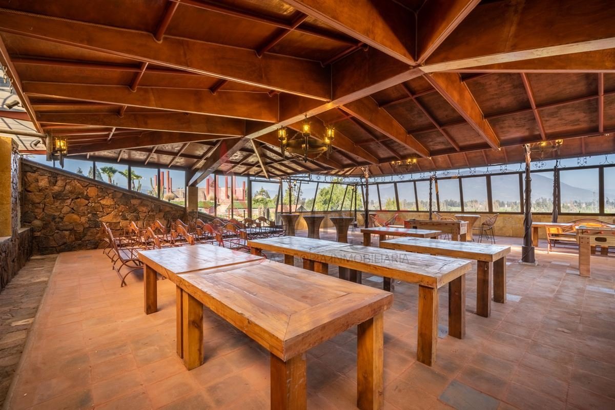 Consta de un terreno de casi 3 Hectáreas (28.220m2), y una edificación de 685 m2, de estilo rústico, campestre y muy acogedor, y con una impresionante vista al valle, el cual se ha consolidado comercialmente hace 15 años.