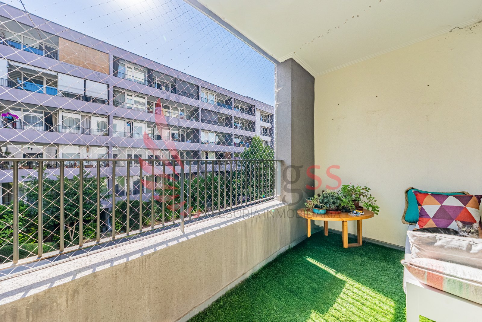 Balcón / terraza con hermosa vista a jardín interior, ideal para descansar.