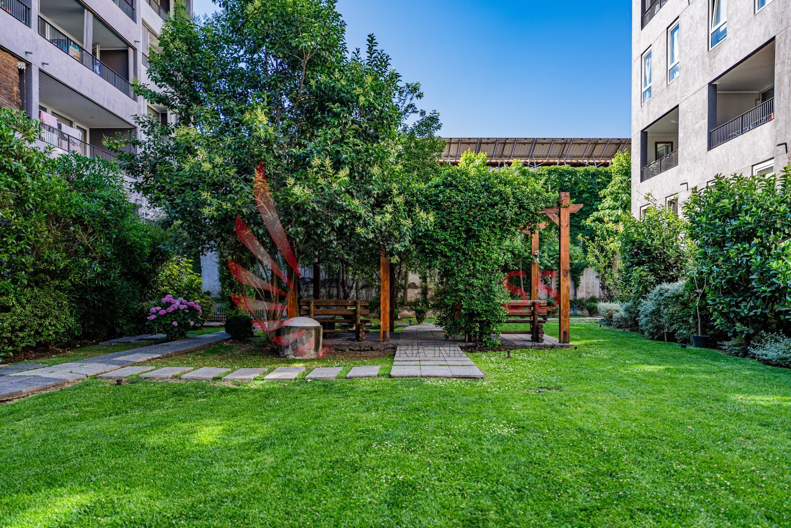 Un entorno verde y cuidado que entrega una sensación de calma poco común en la ciudad.