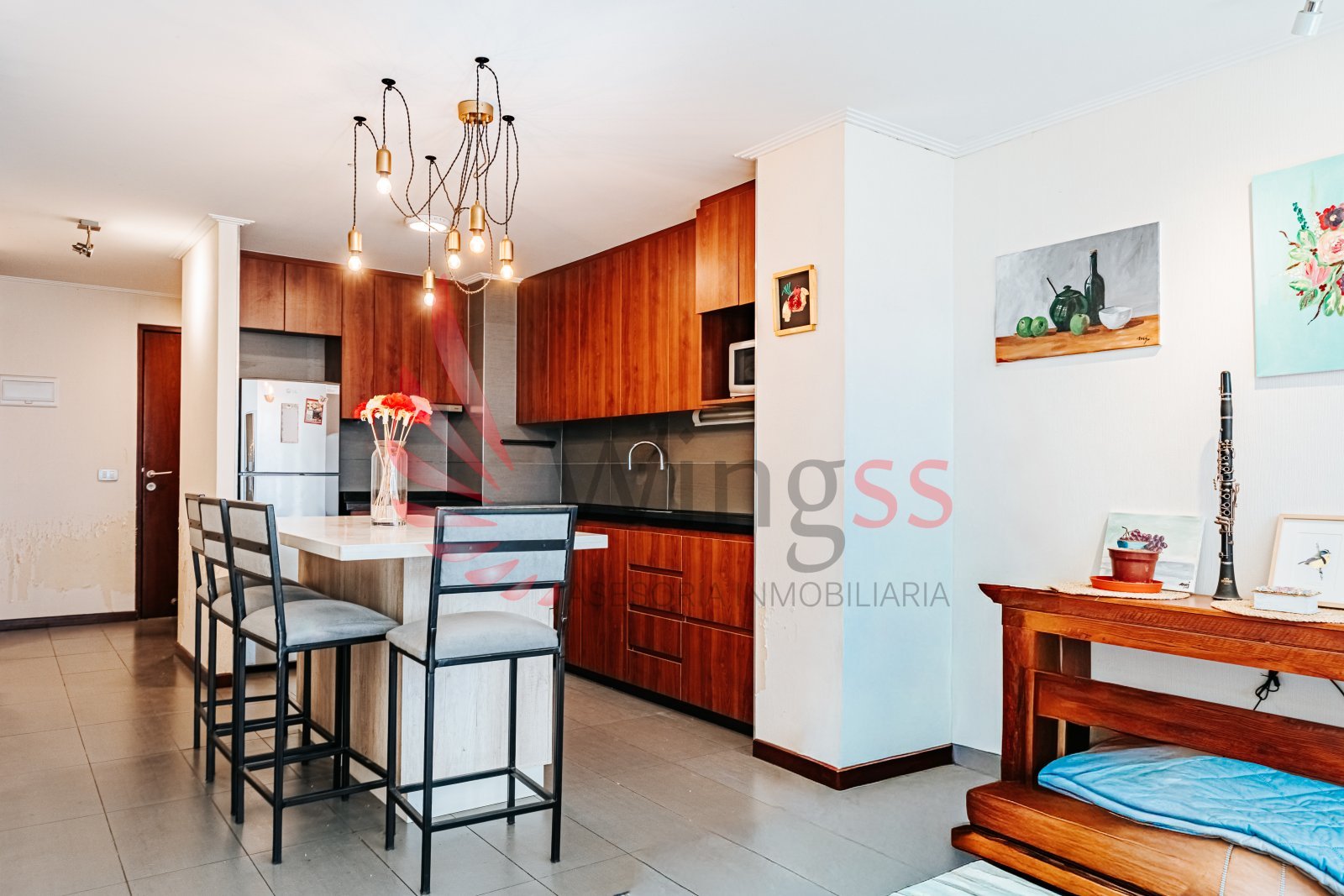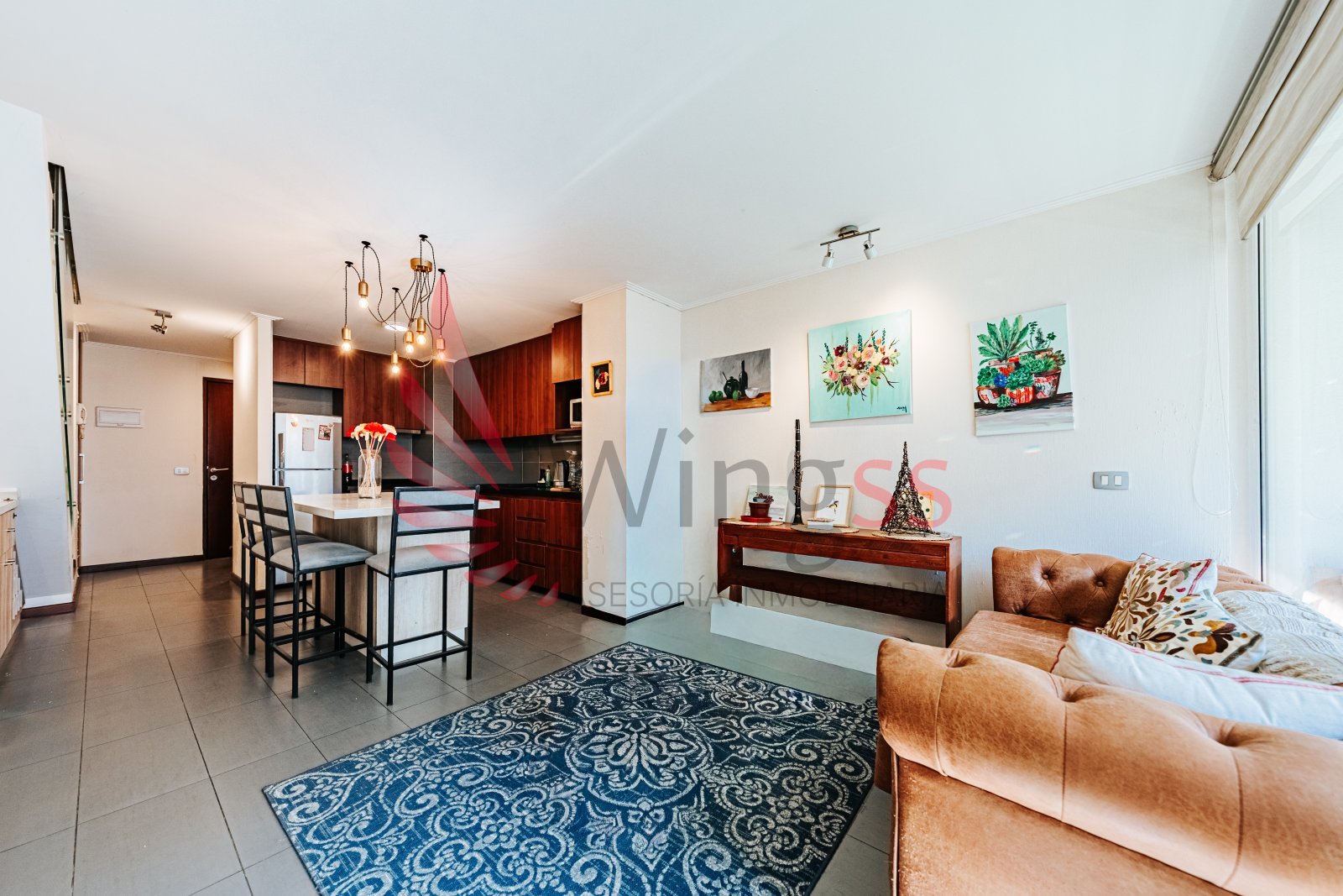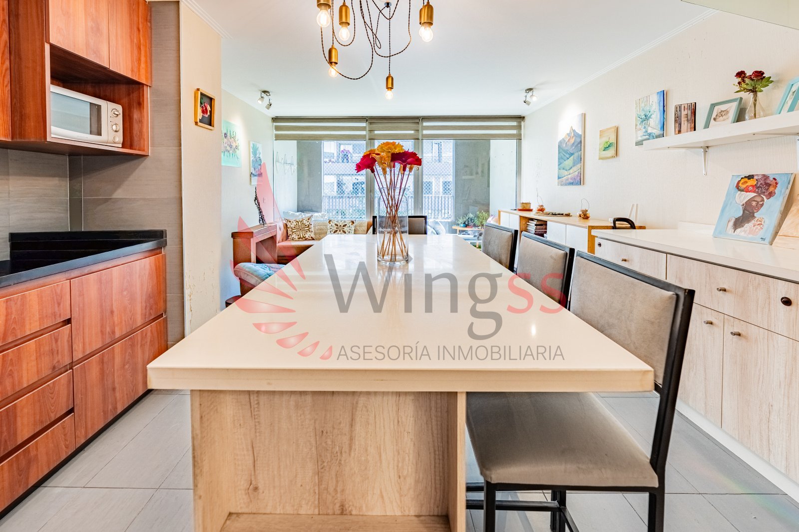 Living–comedor de concepto abierto, amplio y muy luminoso.