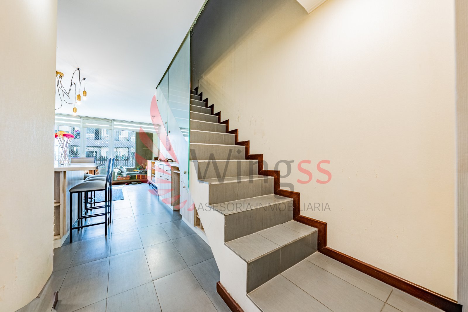 Bar bajo la escalera, un detalle único que aporta diseño y personalidad.