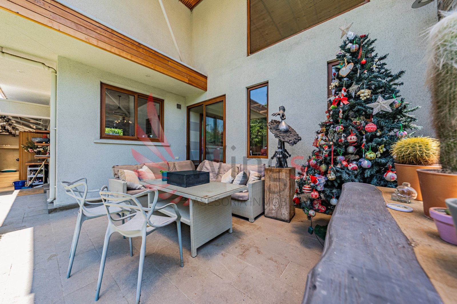 Estupenda Piscina, gran patio con árboles frutales, y terraza con quincho. Taller y zona de espacios libres.