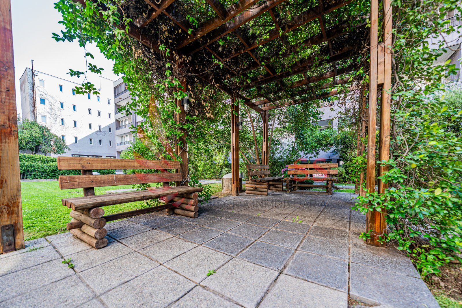 98 m² | Jardines interiores | Tranquilidad, diseño y conectividad Te presentamos este hermoso departamento dúplex remodelado, de 98 m² totales más 8 m² de terraza, ubicado en una calle tranquila y exclusiva, a pasos del Barrio Italia y del Metro Santa Isabel, dentro de un condominio cerrado con áreas verdes y jardines interiores. Un verdadero oasis urbano, ideal para quienes buscan comodidad, tranquilidad, diseño y conexión con lo mejor de la ciudad: cafés, restaurantes, centros culturales y la inconfundible vida bohemia de Barrio Italia. 🏡 Distribución funcional y espacios con carácter Primer Nivel Living–comedor de concepto abierto, amplio y muy luminoso. Moderna cocina integrada con mesón isla, gran capacidad de almacenamiento y excelente funcionalidad. Bar bajo la escalera, un detalle único que aporta diseño y personalidad. Baño de visitas con conexión a lavadora. Balcón / terraza con hermosa vista a jardín interior, ideal para descansar. Ambiente silencioso, con muy poco ruido, gracias a su orientación y entorno interior. Segundo Nivel 2 dormitorios en suite, ambos con baño en suite. Sala de estar en planta alta, perfecta como home office, sala de juegos o espacio multifuncional. Excelente distribución que entrega privacidad y comodidad. 🛠️ Características del departamento 90 m² útiles+ 8 m² de terraza 2 dormitorios + sala de estar 3 baños Ventanales termopanel Pisos en porcelanato Calefacción por losa radiante Orientación oriente y poniente, con excelente iluminación natural Mobiliario hecho a medida 1 Estacionamiento 1 Amplia bodega Gastos comunes aproximados: $160.000 🏢 Edificio / Condominio (año 2015) Condominio cerrado con hermosos jardines interiores Gimnasio completamente equipado Salones multiuso Conserjería 24/7 Paneles solares para eficiencia energetica Estacionamientos de visita